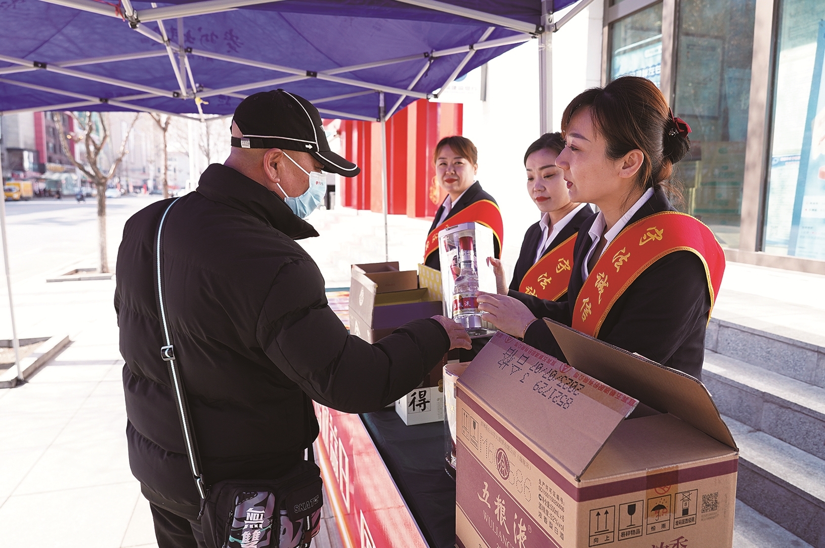 每到国际消费者权益日,白山方大集团都开展系列宣传活动。图为工作人员为消费者介绍如何辨别中国名酒真伪。